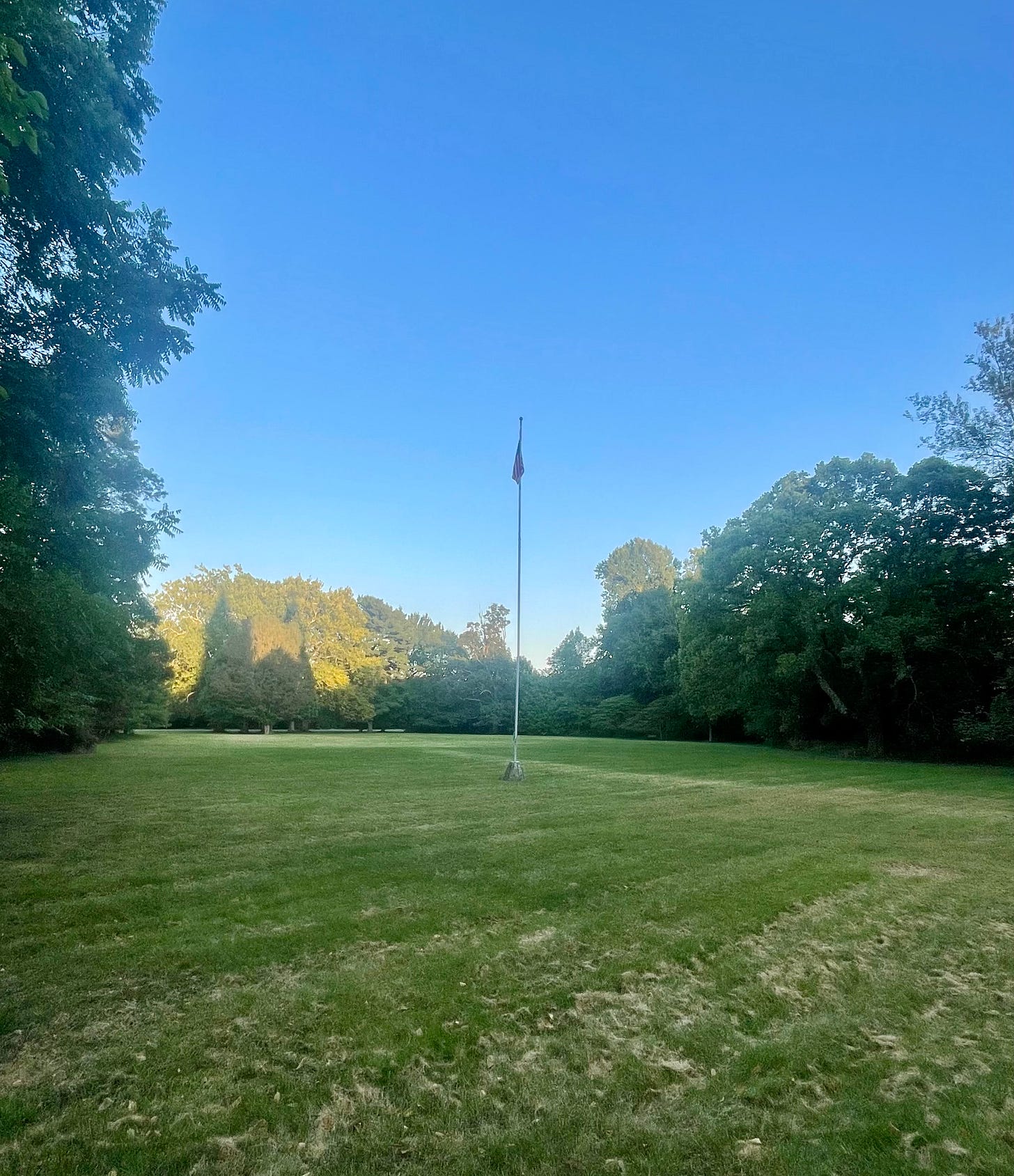 You can’t see it very well in my photo—but the American flag stands tall, here at Antioch: