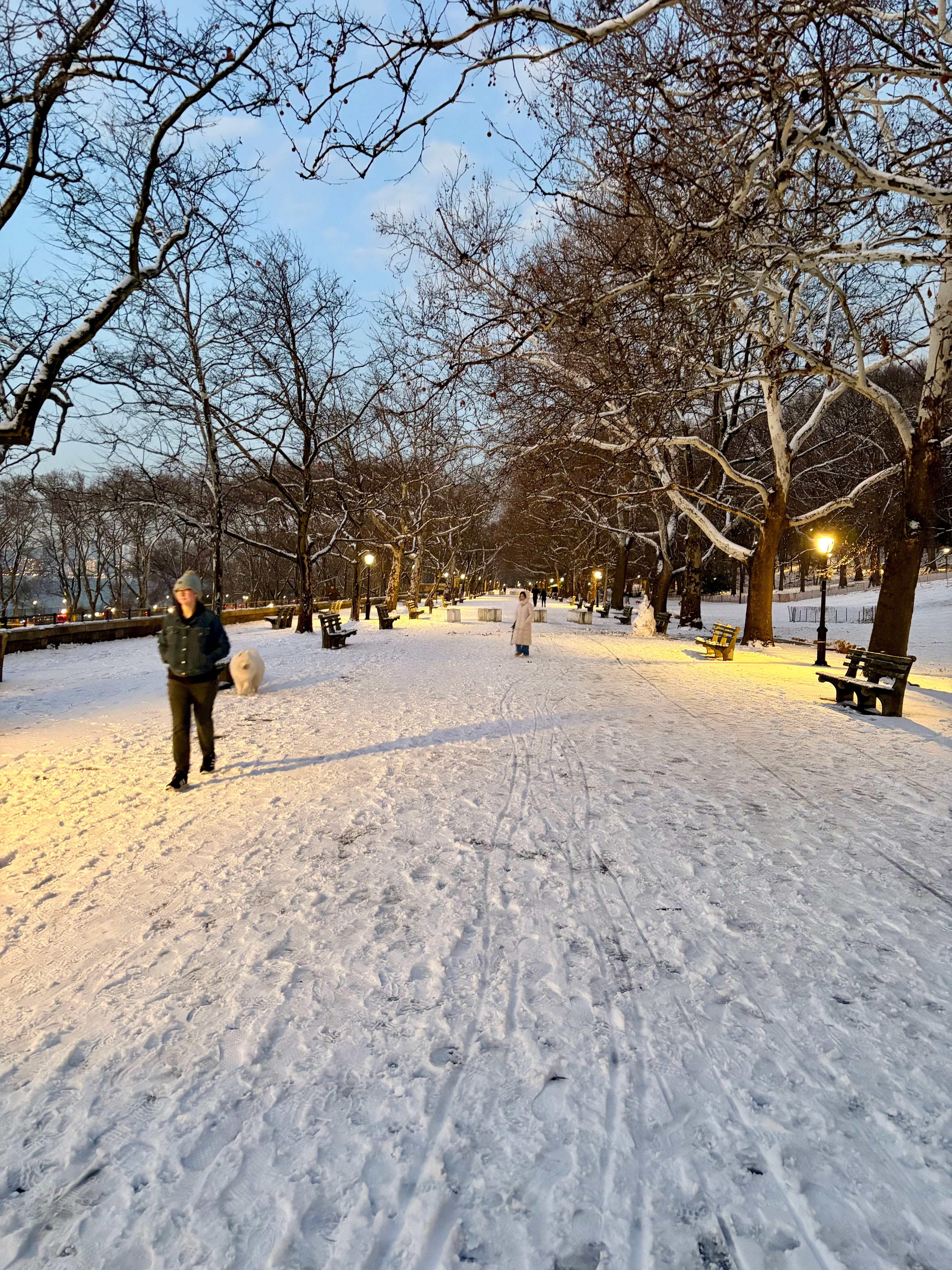 When I was growing up, there was a popular children’s book, The Snowy Day. (Magical thing, as I recall.) Well, this was a snowy evening, in ol’ New York: