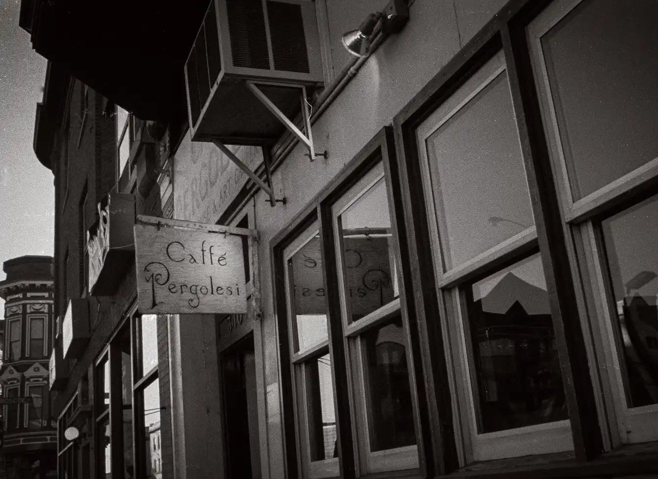 The picture I am sending you shows the wrong accent, alas. This place, which I shall henceforth refer to as “Caffè Pergolesi,” was my favorite place in Chicago. I discovered it only as my undergraduate years at Northwestern U. were drawing to a close.