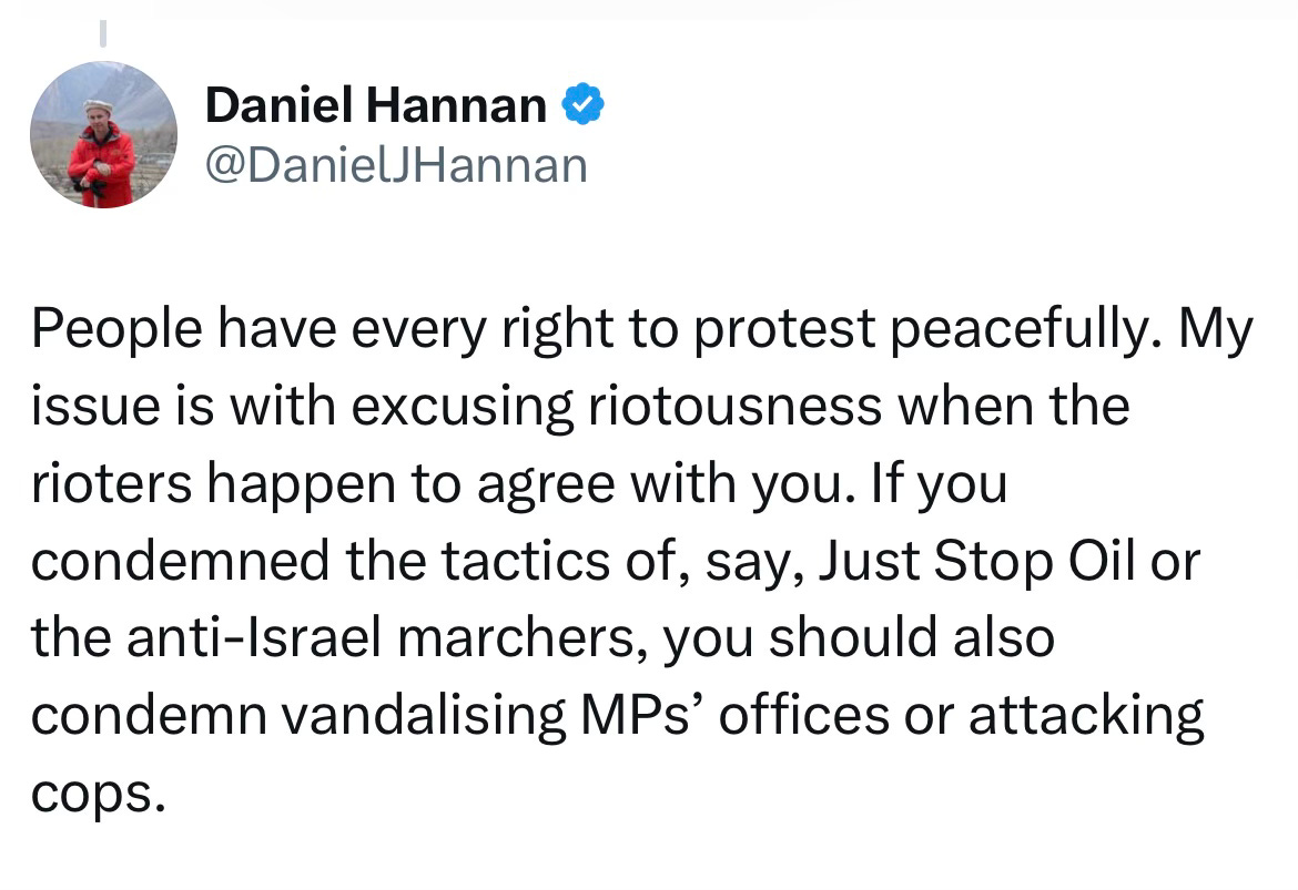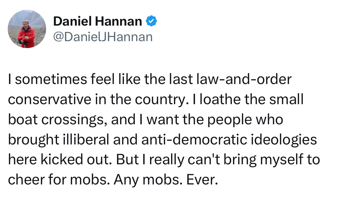 Earlier today, I was talking, offline and on, with Daniel Hannan, the British writer-politician (whose website is here). We were discussing an old theme. There had been protests in Britain, concerning immigration. Dan tweeted the following:
