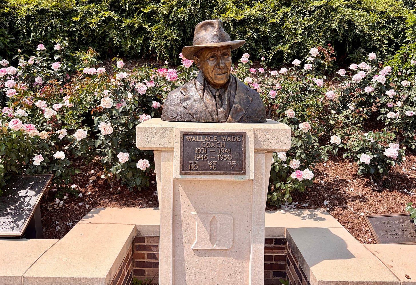 Here is Wallace Wade, after whom the football stadium is named. I noted the gap: he coached the team from 1931 to 1941, and again from 1946 to 1950.