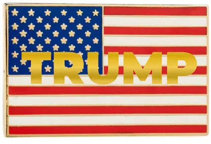 Donald J. Trump’s campaign is billing it as a must-have fashion accessory for his supporters: an American flag lapel pin with the former president’s name scrawled in gold block letters across it—in all caps.