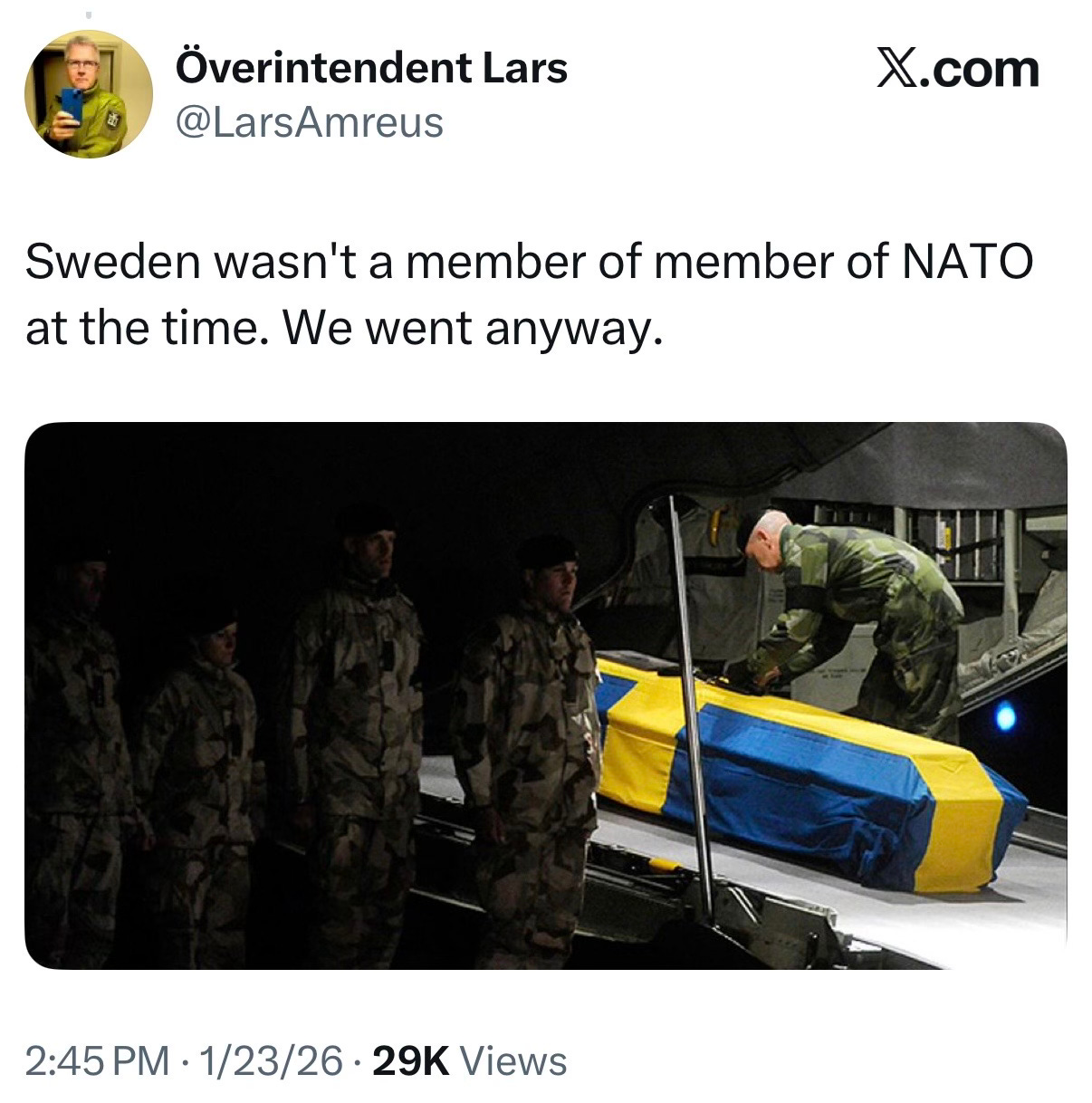 Take Denmark, the object of Republicans’ wrath lately. That tiny country had 9,500 troops in Afghanistan. Forty-three of them were killed. After the United States, no member of that coalition suffered more losses per capita than Denmark.