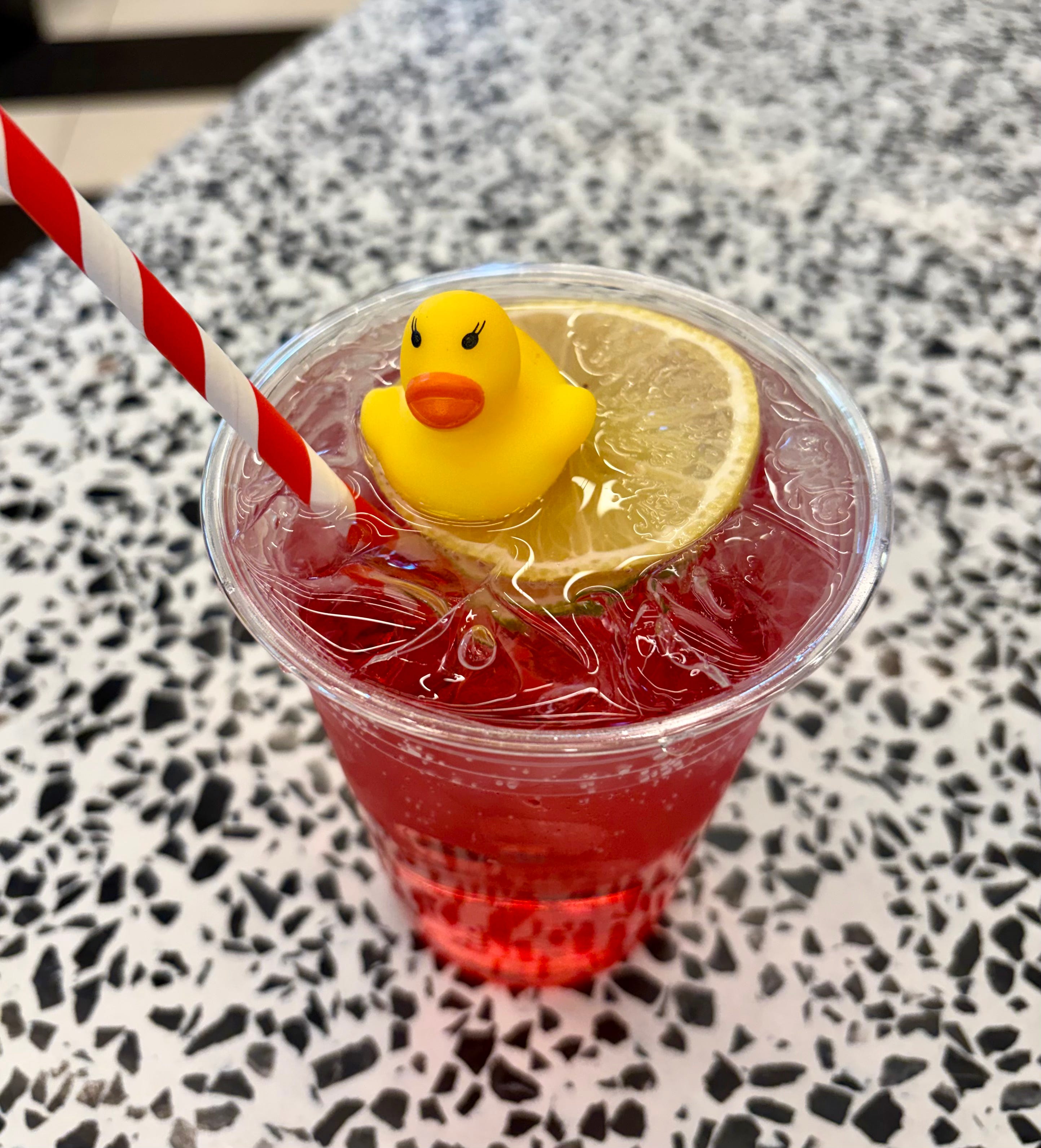 I have had, or at least seen, drinks with umbrellas in them. But, until lunching at New Haven’s The Place 2 Be, I had never had, or seen, a drink with a rubber ducky in it: