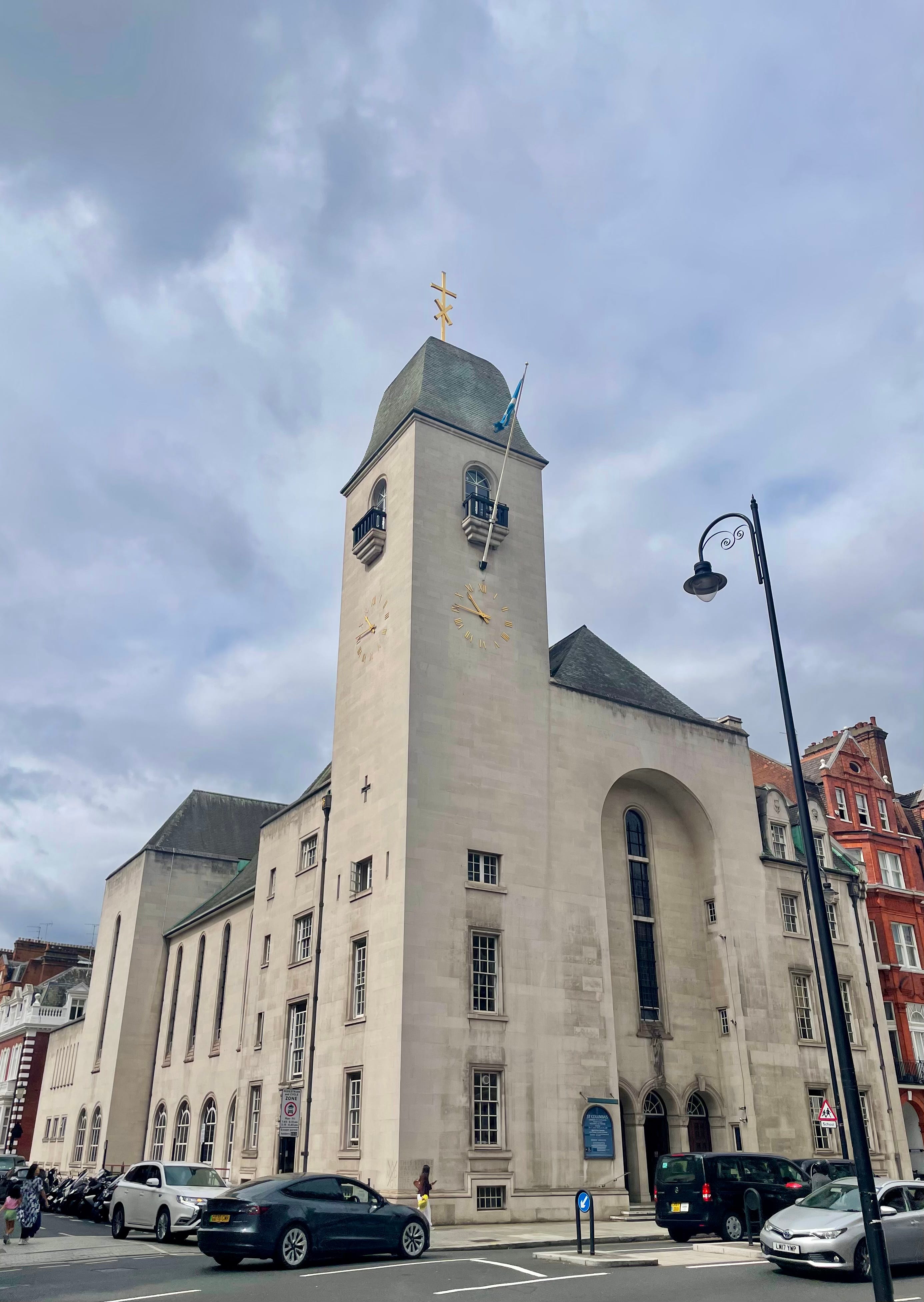 Here is St Columba’s Church, in Knightsbridge—Presbyterian (part of the Church of Scotland). Do you know what I find appealing about it? Its plainness. An attractive plainness.