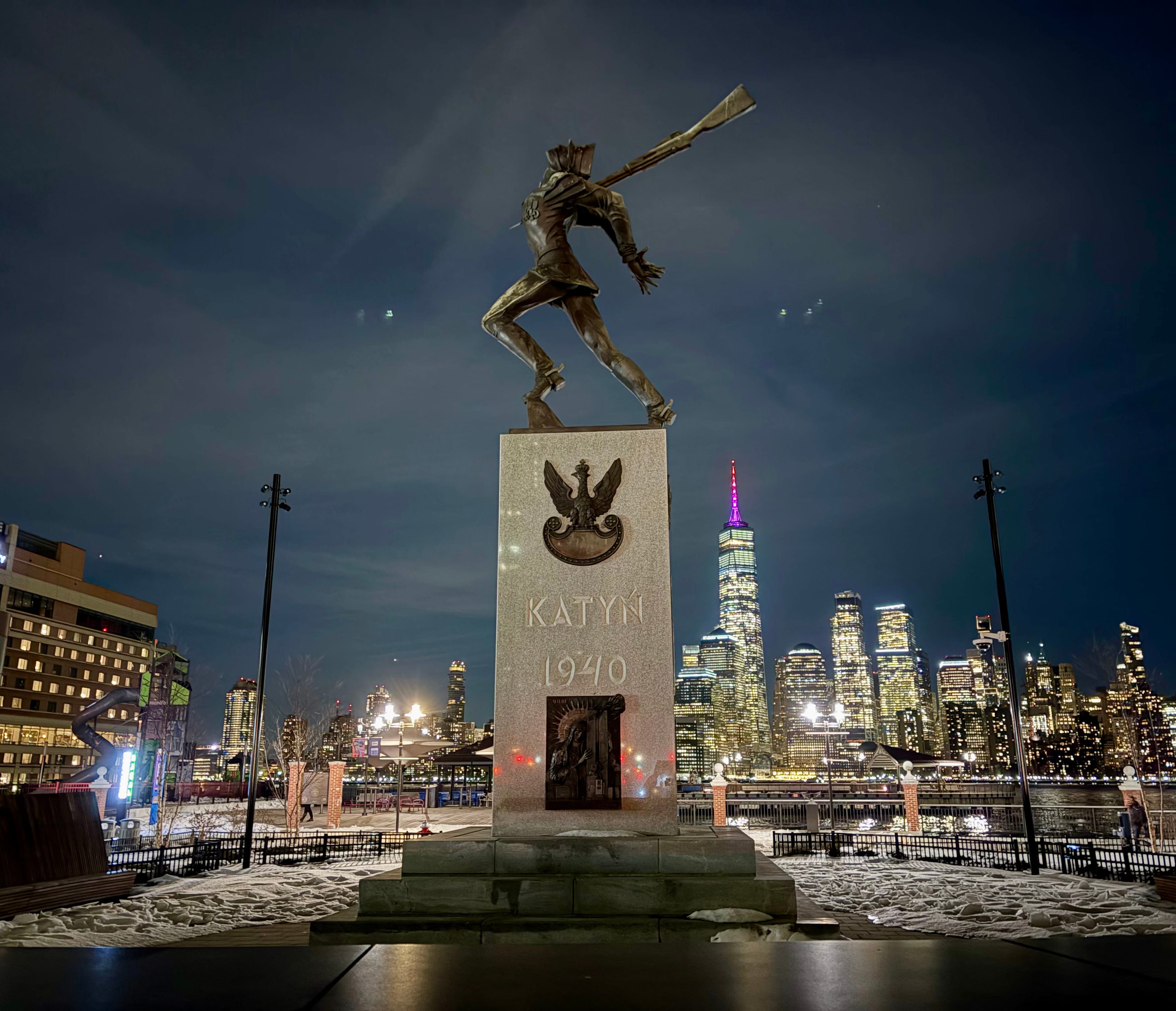 I’ve been talking about Russia and Poland, among other countries. In Jersey City, N.J., there is a memorial to the Katyń massacre (in which the Soviets killed about 22,000 Poles). I took a picture of the memorial last week, with Lower Manhattan in the background: