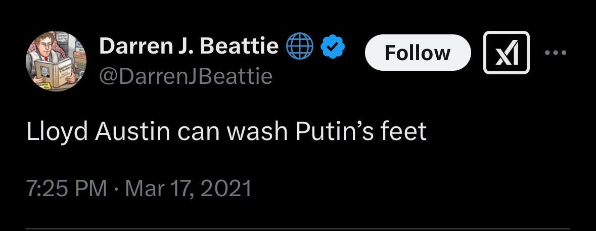 (Lloyd Austin is the retired U.S. Army general who served as our defense secretary in the previous administration.)