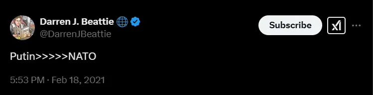 For many years, Russia and our nationalist-populist Right have shared a goal: the destruction of NATO. The day seems to be upon us now. All of my life, I had heard conservatives say, “NATO is the most successful military alliance in history. And it has benefited, more than any other country, the United States.”