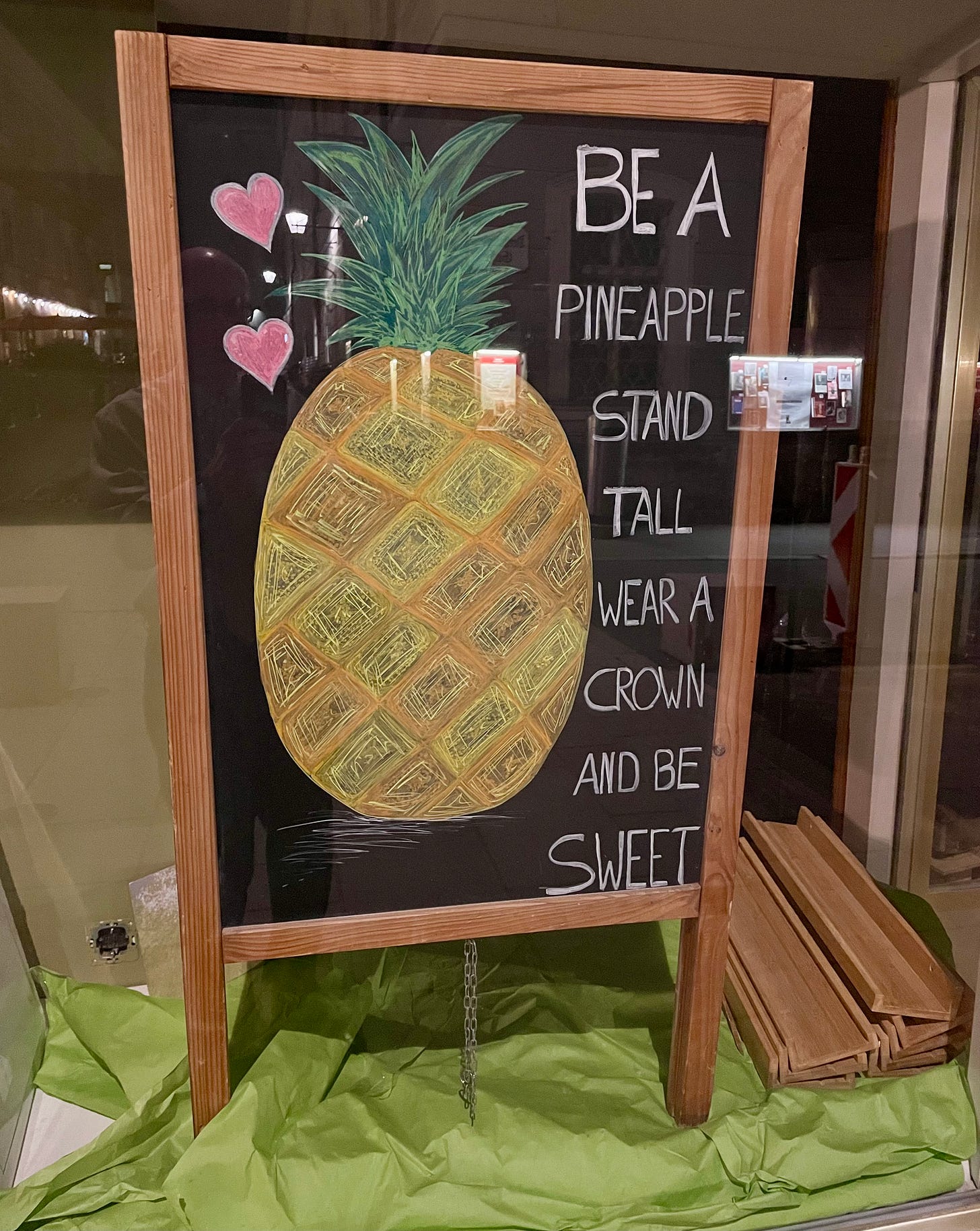 He shows up at grocery stores too. Here’s a poster outside my local Spar: