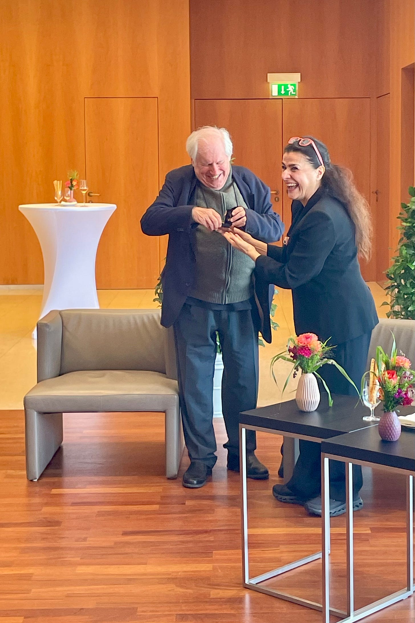 Meanwhile, have a shot of Sokolov and Cecilia, after they have had a peek at his award, his medal. I love this picture—the joy of it.
