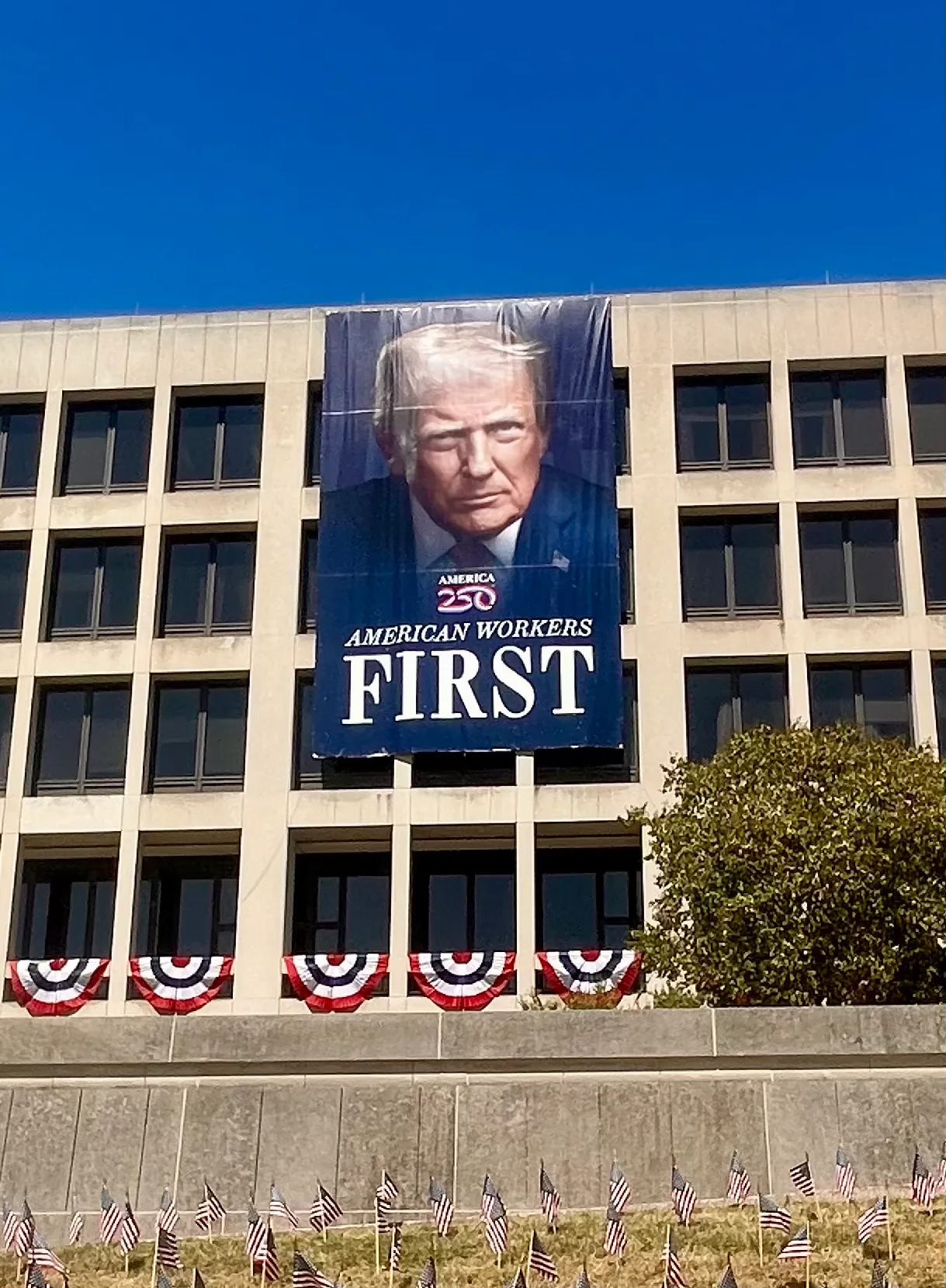 I was repulsed. Because I think Trump is unfit to be president? No, because I think such a banner on a federal building is unbefitting of our republic. I mean, leave it to Turkmenistan or some other such place.