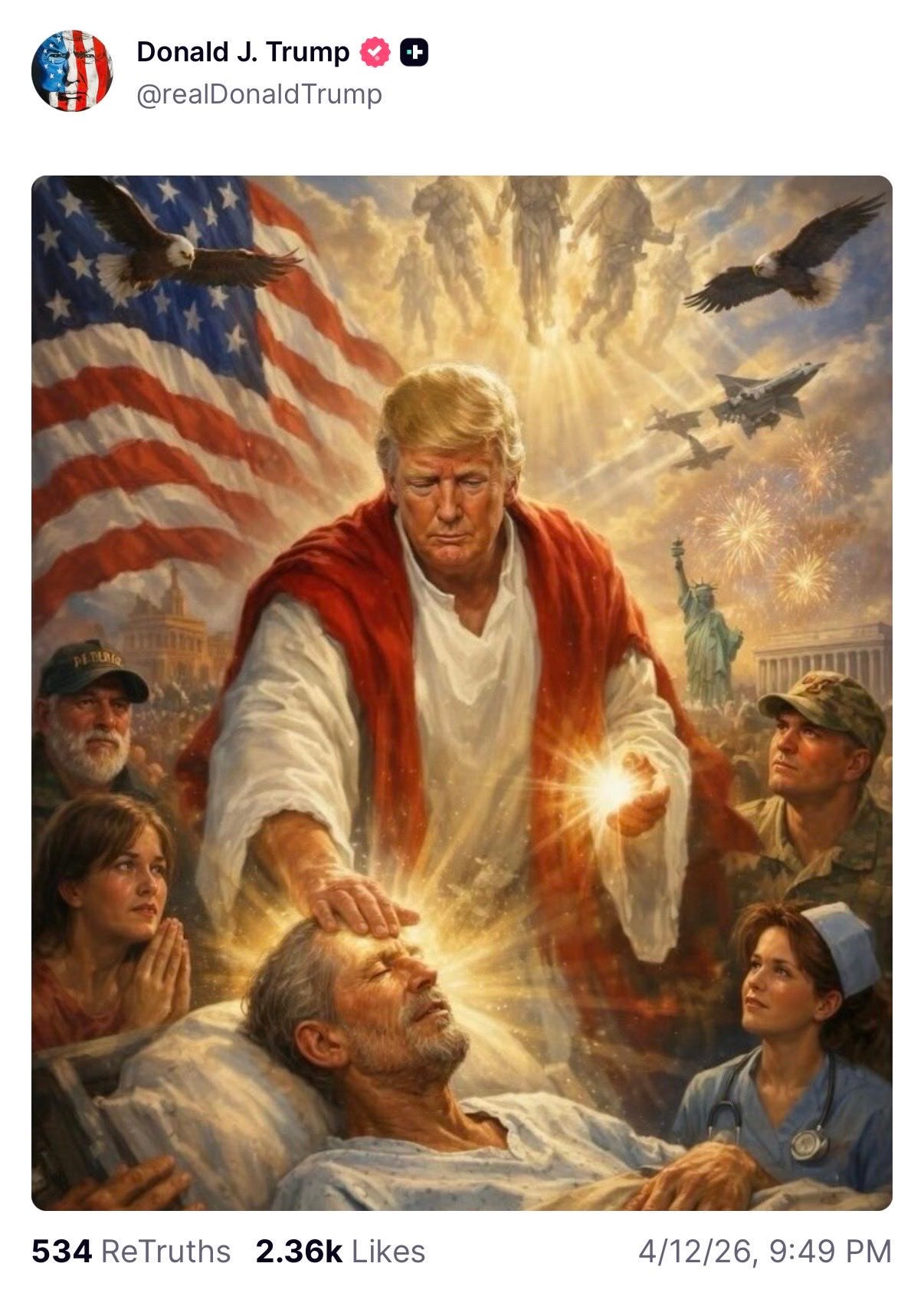 Can you imagine, by the way, if a Democratic president—Barack Obama, let’s say—routinely circulated such imagery of himself? Man alive.