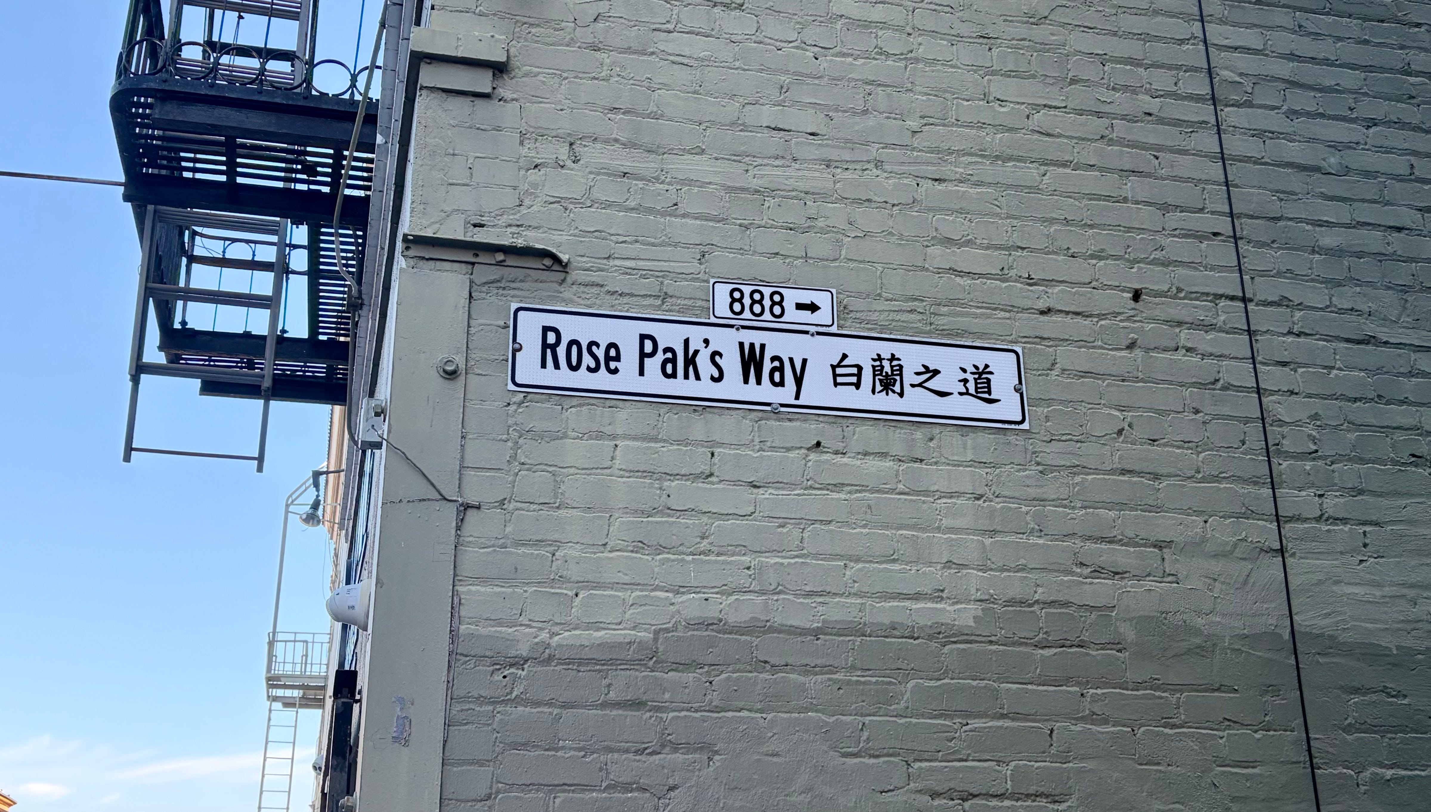 When I saw this sign from a distance, I thought it said “Rosa Park’s Way.” But no. Rose Pak was a Chinese-American activist (1947–2016).