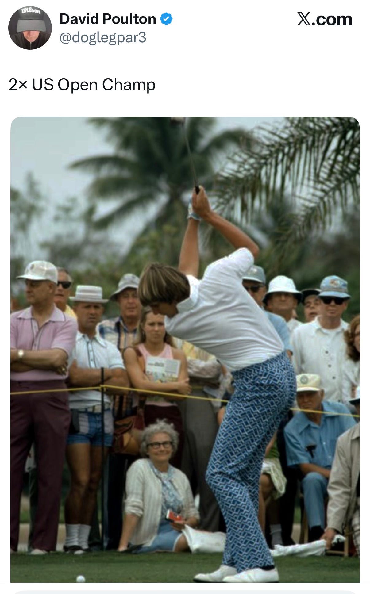 Look at Andy North, in amazing form at the top (of his swing). I must say, I was drawn to the smile on the face of that lady sitting down: