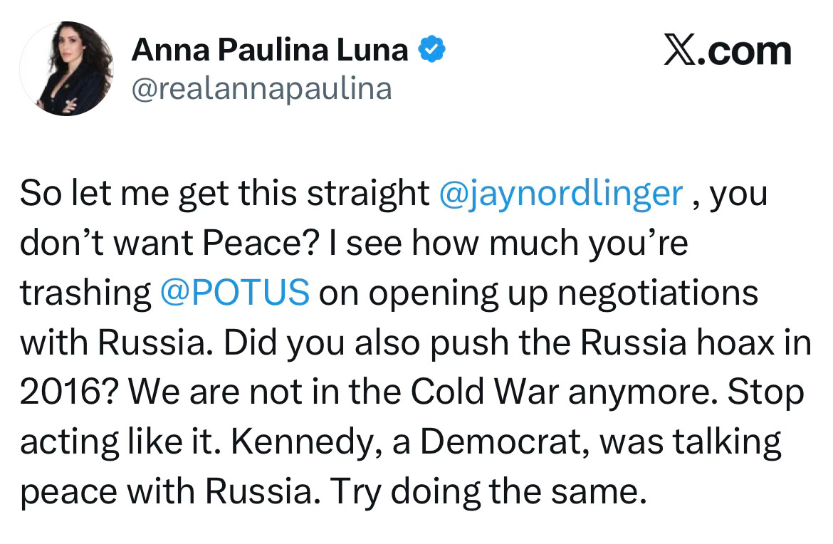 This morning, I had a question from a congresswoman, on X: “you don’t want Peace?” That congresswoman is a Florida Republican, Anna Paulina Luna.