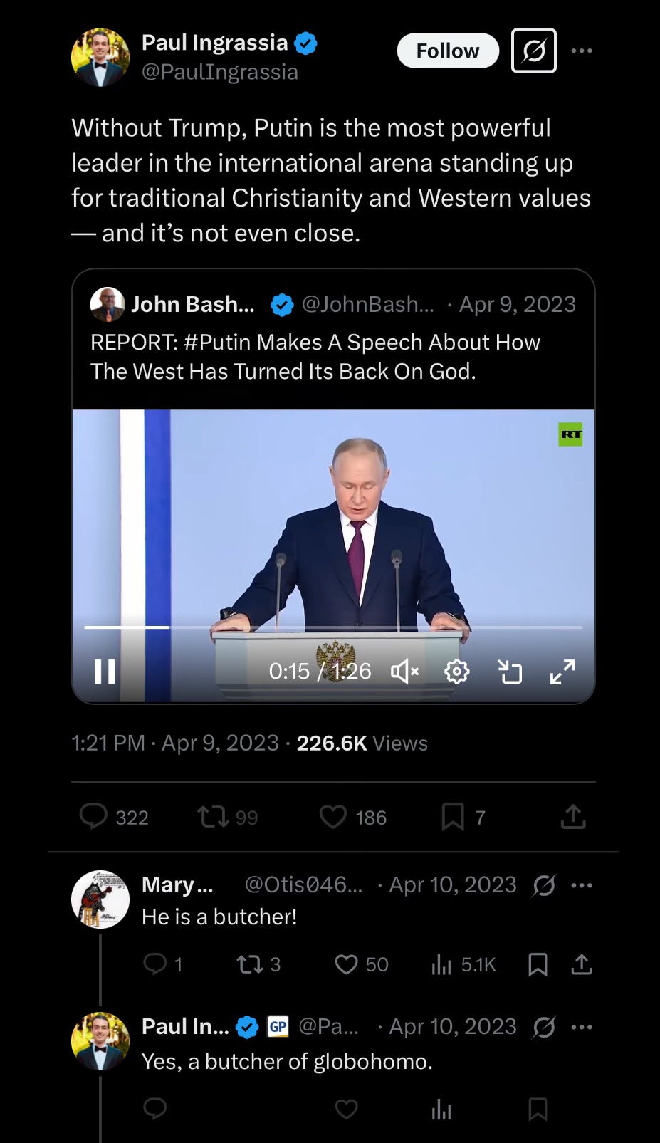 There are many things to say in response to Luna’s tweet. For years, people on the nationalist-populist right have said to me, “Don’t you know the Cold War’s over?’ I often reply, “Does Putin?”